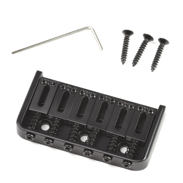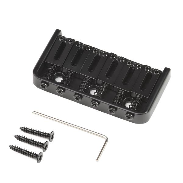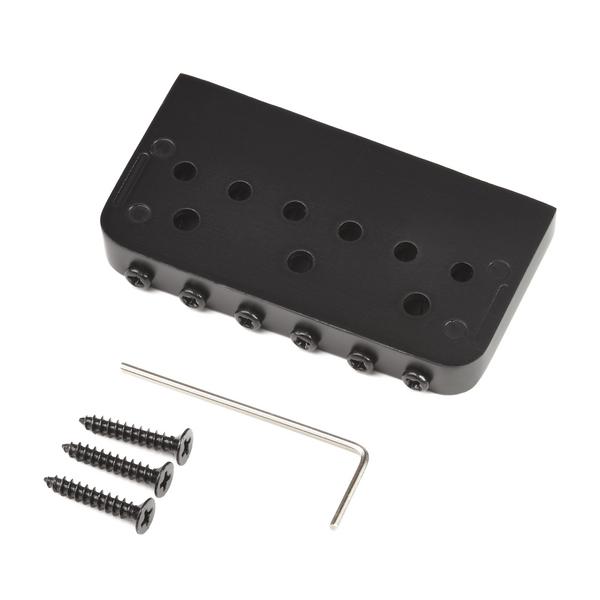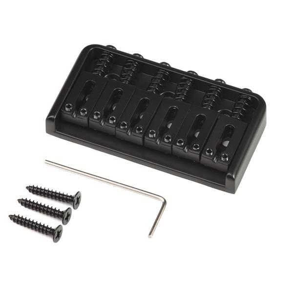 Фиксированный укороченный бридж для 6-струнной электрогитары. Боковые стенки, 6 прямоугольных седел из цинкового сплава, спэйсинг 10.5 мм, габариты 72.5 х 38 мм. Крепление струн сквозь корпус. Черная отделка конструкции. В комплекте ключ для настройки и 3 самореза.