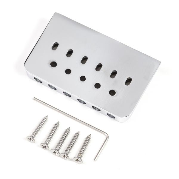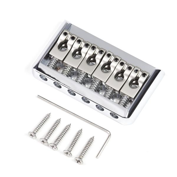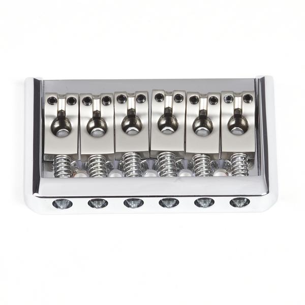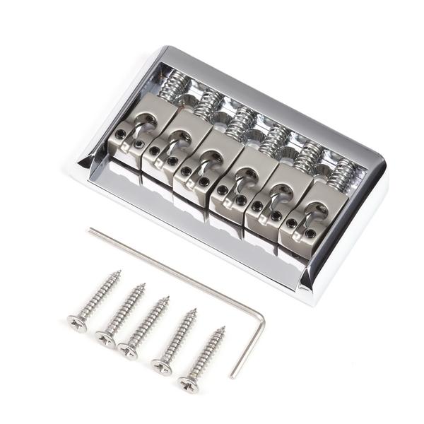 Фиксированный бридж для 6-струнной электрогитары. Гладкая поверхность седел, спэйсинг 9 мм, габариты 65.5 х 39 мм. Крепление струн сквозь бридж. Хромированная отделка основания, никелированные седла из цинкового сплава. Ключ для настройки и 5 саморезов в комплекте.
