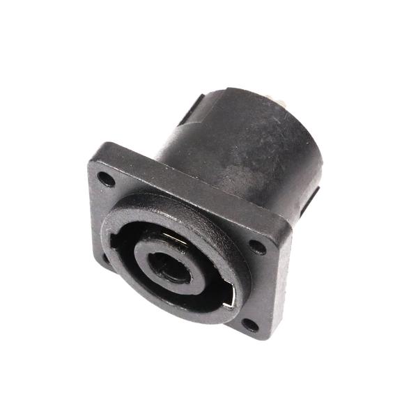4-контактный панельный терминал Speakon. Габариты (ДxШxВ): 31 x 33 x 26 мм. Корпус из пластика, крепление на 4 винтах. Позолоченные контакты.